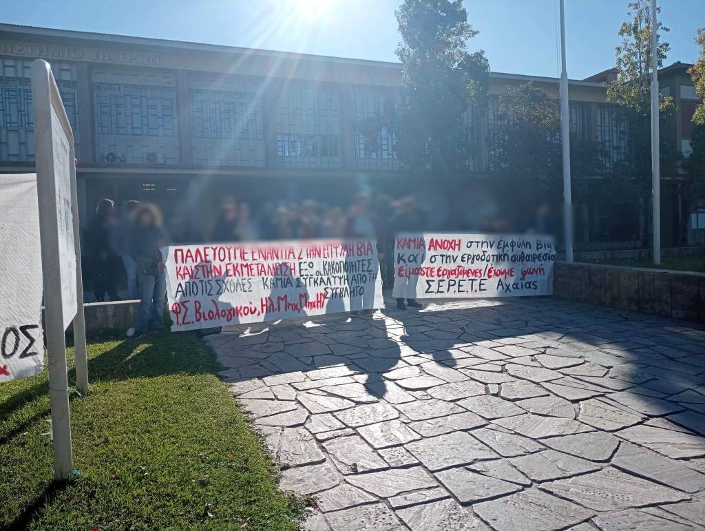 Την Παρασκευή 25/11 το πρωί καλέστηκε από την πρωτοβουλία γυναικών ενάντια στην πατριαρχία συγκέντρωση στην Πρυτανεία του Πανεπιστήμιου Πατρών με αφορμή την υπόθεση μέλους ΔΕΠ που παρενόχλησε διδακτορική φοιτήτρια, στην οποία καλούσαν σωματεία και οργανώσεις.