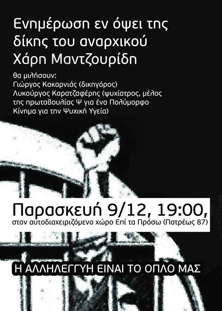 Ενημέρωση εν όψει της δίκης του αναρχικού Χάρη Μαντζουρίδη