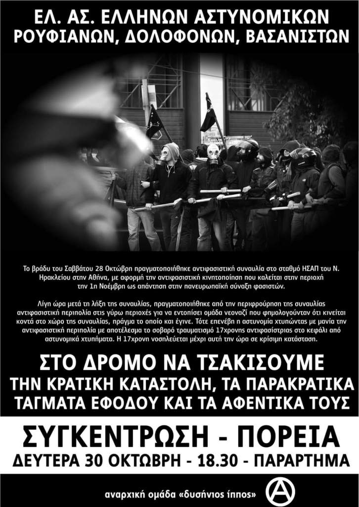 Το βράδυ του Σαββάτου 28 Οκτώβρη πραγματοποιήθηκε αντιφασιστική συναυλία στο σταθμό ΗΣΑΠ του Ν. Ηρακλείου στην Αθήνα, με αφορμή την αντιφασιστική κινητοποίηση που καλείται στην περιοχή την 1η Νοέμβρη ως απάντηση στην πανευρωπαϊκή σύναξη φασιστών.