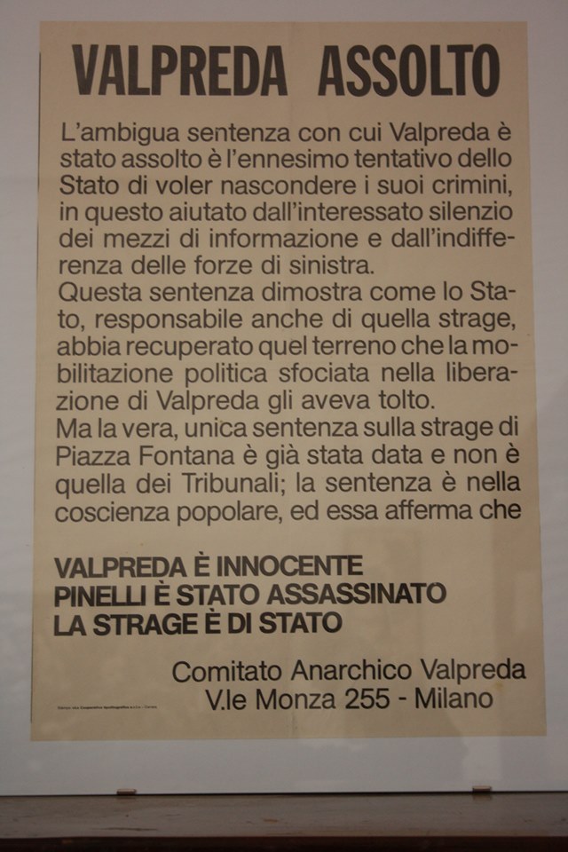 Ο Πινέλι δολοφονήθηκε. Ο Βαλπρέντα είναι αθώος. Η σφαγή είναι του κράτους. Κατηγορούνται οι αναρχικοί για να γλυτώσουν οι φασίστες.