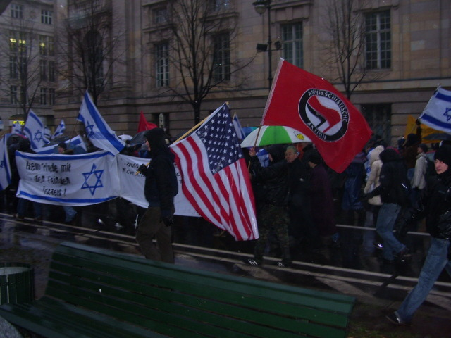 Κάποιοι απ’ αυτούς όμως, αυτοαποκαλούνται και αναρχικοί, αντιεξουσιαστές, αριστεροί και ανήκουν στο ευρύτερο ανταγωνιστικό κίνημα. Αυτοί χωρίζονται σε δύο κατηγορίες: σε αυτούς που ευθέως παίρνουν το μέρος του κράτους του Ισραήλ και του δικαιώματος του στην αυτοάμυνα· και σε αυτούς που μιλούν για οργάνωση των δύο λαών εναντία στον κοινό εχθρό, τα κράτη, και ασκούν κριτική στις οργανώσεις της παλαιστινιακής αντίστασης ως φονταμενταλιστικές, εξουσιαστικές και αντισημιτικές.