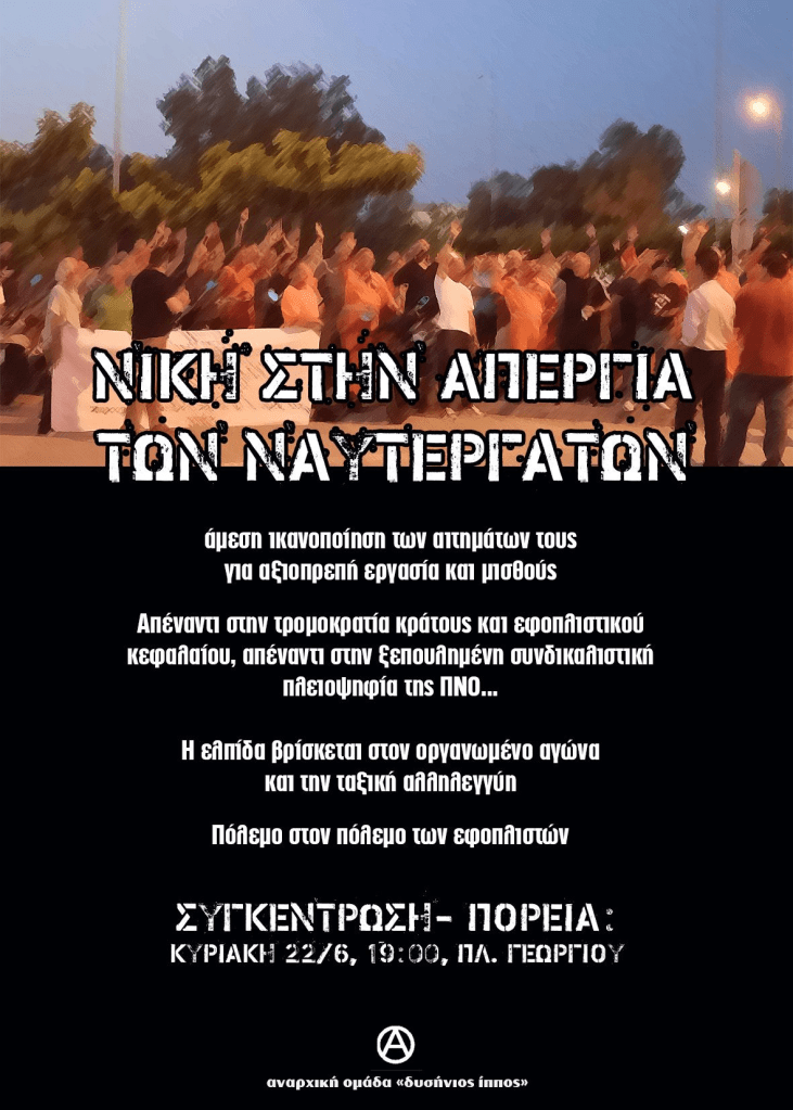 -Απεναντι στην τρομοκρατία κράτους και εφοπλιστικού κεφαλαίου, απέναντι στην ξεπουλημένη συνδικαλιστική πλειοψηφία της ΠΝΟ…