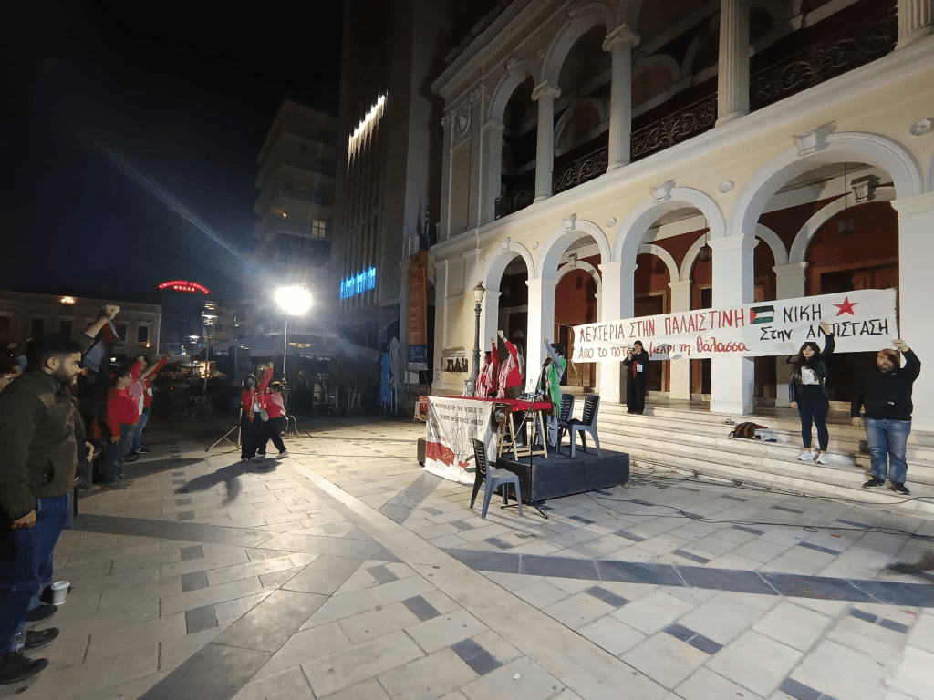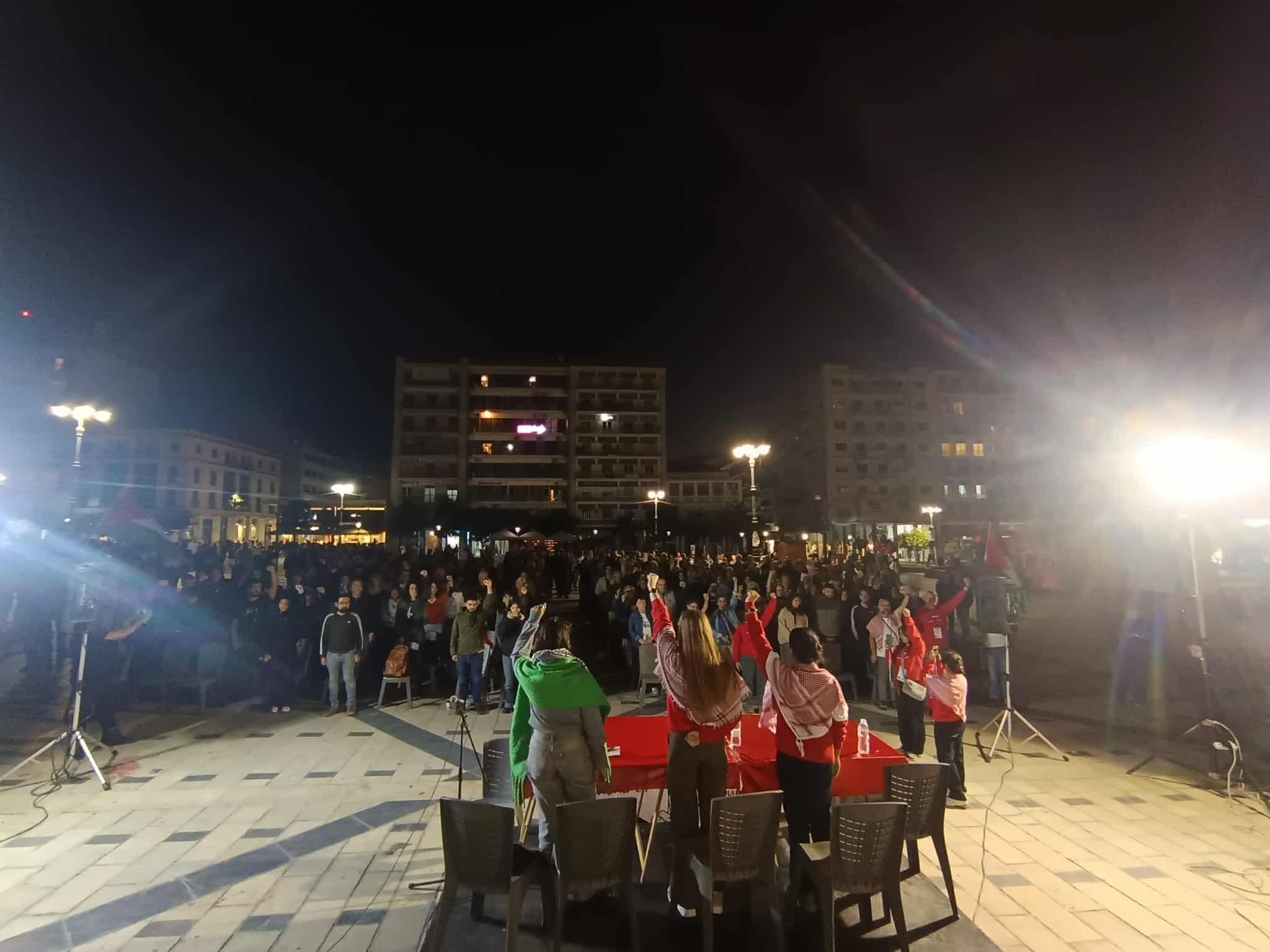 Το απόγευμα, στην πλατεία Γεωργίου, σε μια εκδήλωση που πλαισιώθηκε από εκατοντάδες ανθρώπους, οι σύντροφοι του καραβανιου παρουσίασαν το πολιτικό πλαίσιο με το οποίο κατευθύνονται προς τη Γάζα, ως κομμάτι του επαναστατικού αγώνα των λαών όλης της Γης ενάντια στο σιωνισμό και τον ιμπεριαλισμό. Ακολούθησαν πολιτικές τοποθετήσεις οργανώσεων και συλλογικοτήτων.