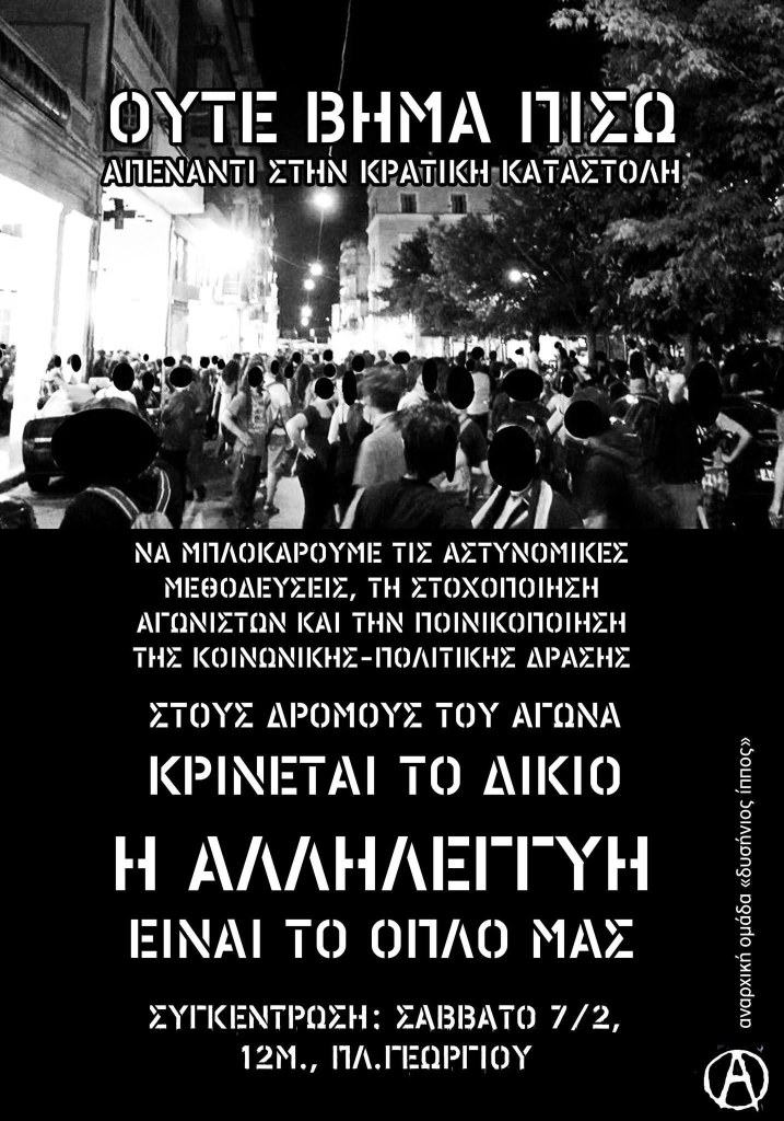 Να μπλοκάρουμε τις αστυνομικές μεθοδεύσεις, τη στοχοποίηση αγωνιστών και την ποινικοποίηση της κοινωνικής-πολιτικής δράσης