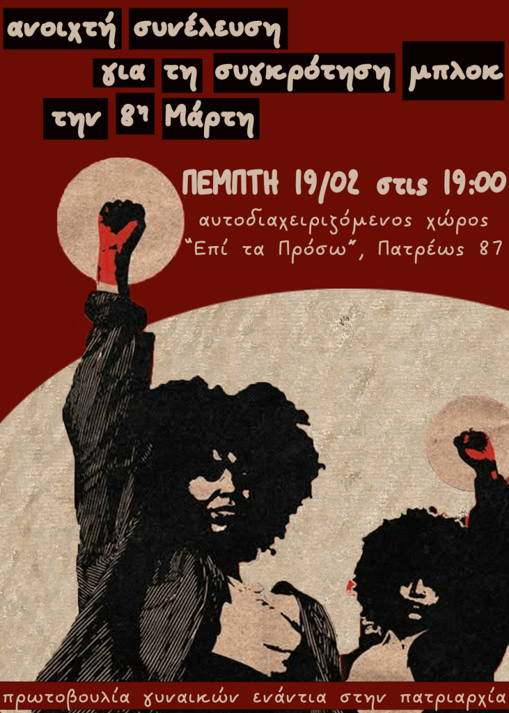 Ανοιχτή συνέλευση για τη συγκρότηση μπλοκ στη διαδήλωση της 8ης Μάρτη στην Πάτρα: