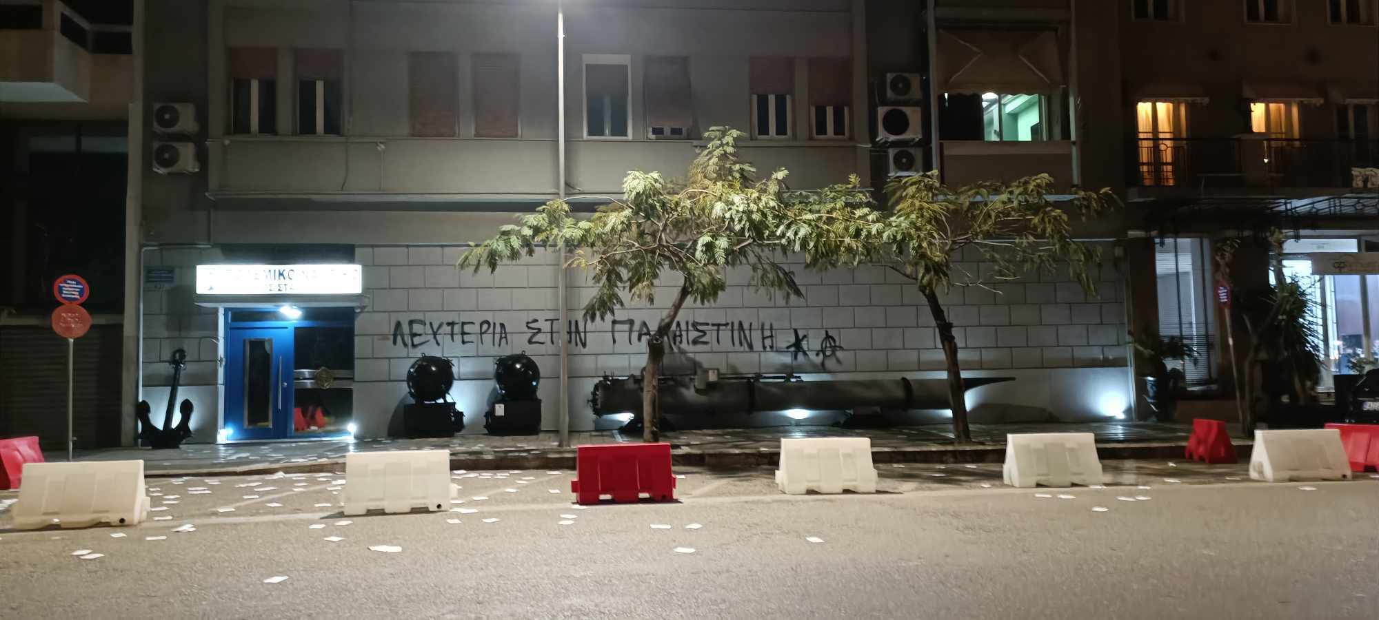 Παρέμβαση αλληλεγγύης στον Παλαιστινιακό λαό πραγματοποιήθηκε το απόγευμα της Πέμπτης 18 Γενάρη από ομάδα συντρόφων-ισσων στη Ναυτική Διοίκηση Ιονίου στην Πάτρα.