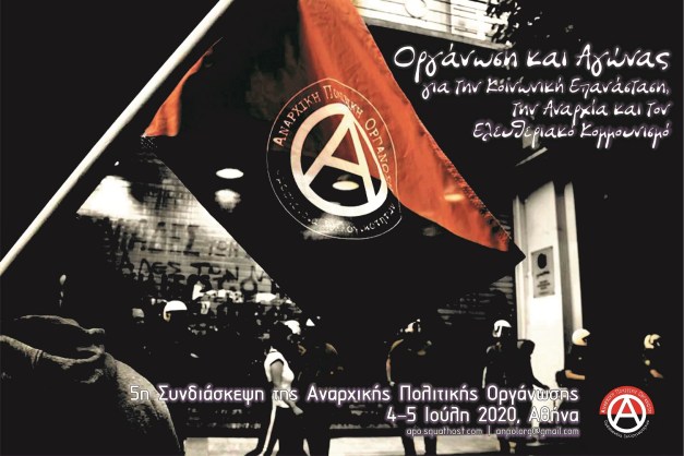 Η 5η Συνδιάσκεψη της Αναρχικής Πολιτικής Οργάνωσης (ΑΠΟ) | Ομοσπονδία Συλλογικοτήτων θα γίνει το διήμερο 4-5 Ιούλη 2020 στην Αθήνα.Κατά την πρώτη μέρα της Συνδιάσκεψης και για συγκεκριμένες διαδικασίες προβλέπεται η παρουσία παρατηρητριών ομάδων.