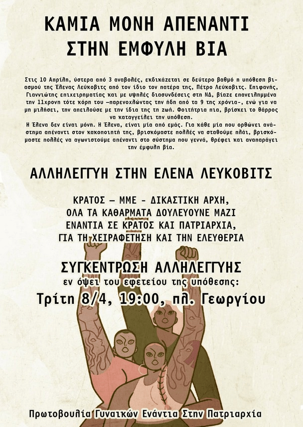 Συγκεντρωση αλληλεγγυης στην Ελενα Λευκοβιτς: Τριτη 8/4 19:00 πλ. Γεωργιου