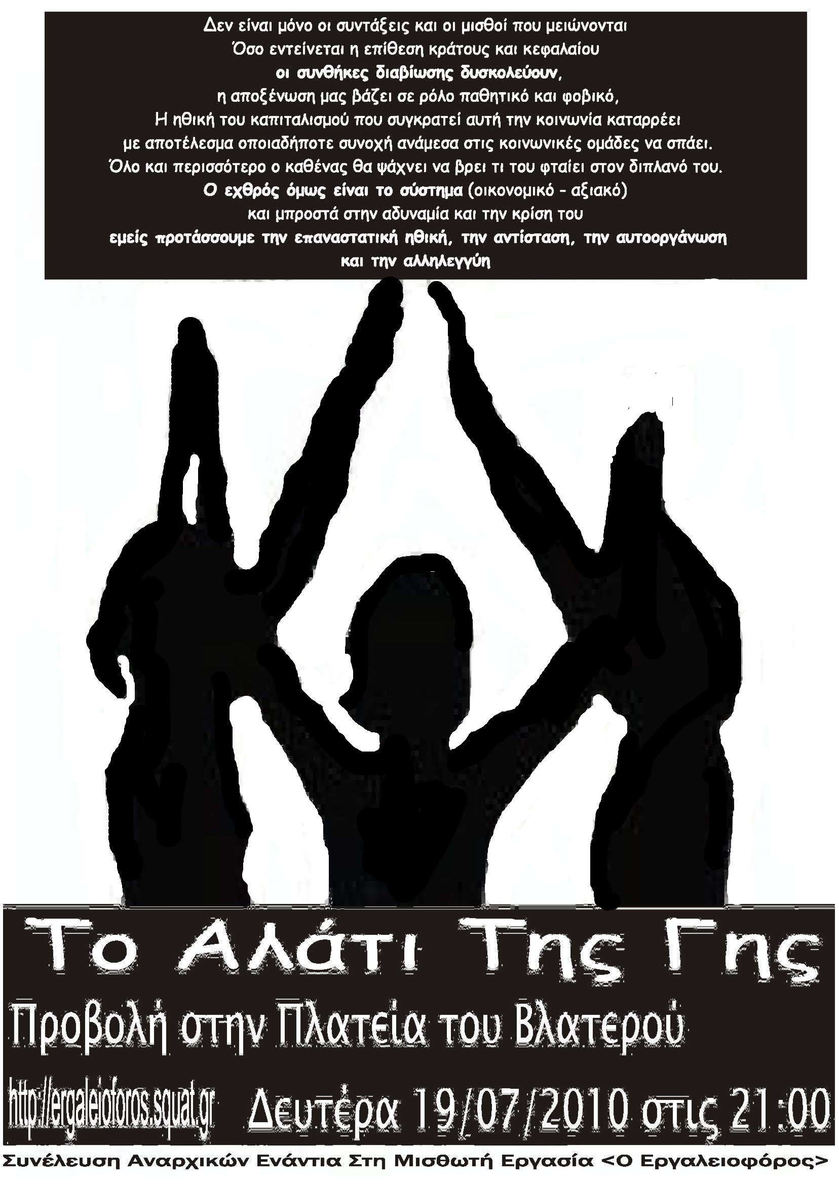Η αντίσταση έξω απο τους θεσμούς, τη διαμεσολάβηση το παραγοντισμό και τ συμφέροντα, είναι αγώνας για την αξιοπρέπεια και την αυτοδιάθεση.