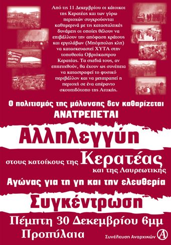 Ο δίκαιος και ανυποχώρητος αγώνας των κατοίκων της Κερατέας θρυμματίζει το δημοκρατικό προσωπείο του καθεστώτος και καταδεικνύει την αντικοινωνική φύση του κράτους.