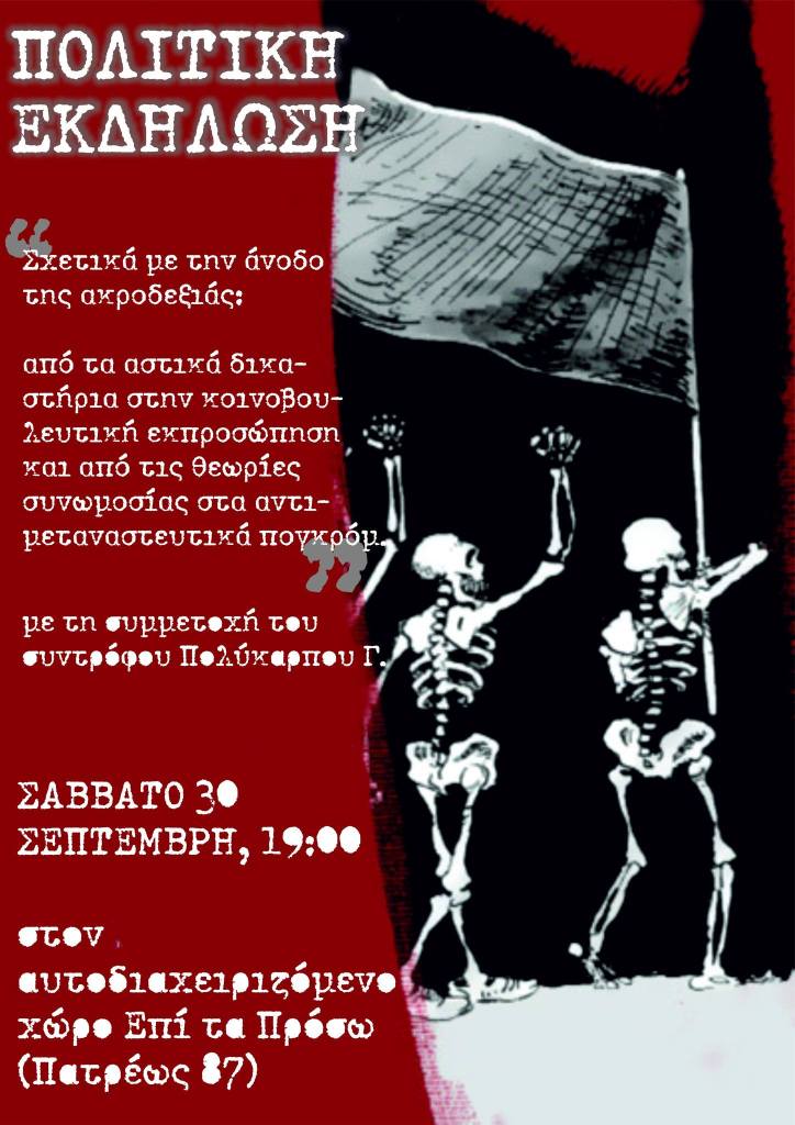 Εκδήλωση – Συζήτηση με τη συμμετοχή των 2 συντρόφων που διώκονται για επιθέσεις στα γραφεία της Χρυσης Αυγής.