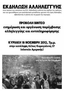 ΣΥΓΚΕΝΤΡΩΣΗ – ΠΑΡΕΜΒΑΣΗ ΑΛΛΗΛΕΓΓΥΗΣ ΣΤΟΝ ΑΓΩΝΑ ΤΩΝ ΚΑΤΟΙΚΩΝ ΤΗΣ ΒΑ ΧΑΛΚΙΔΙΚΗΣ