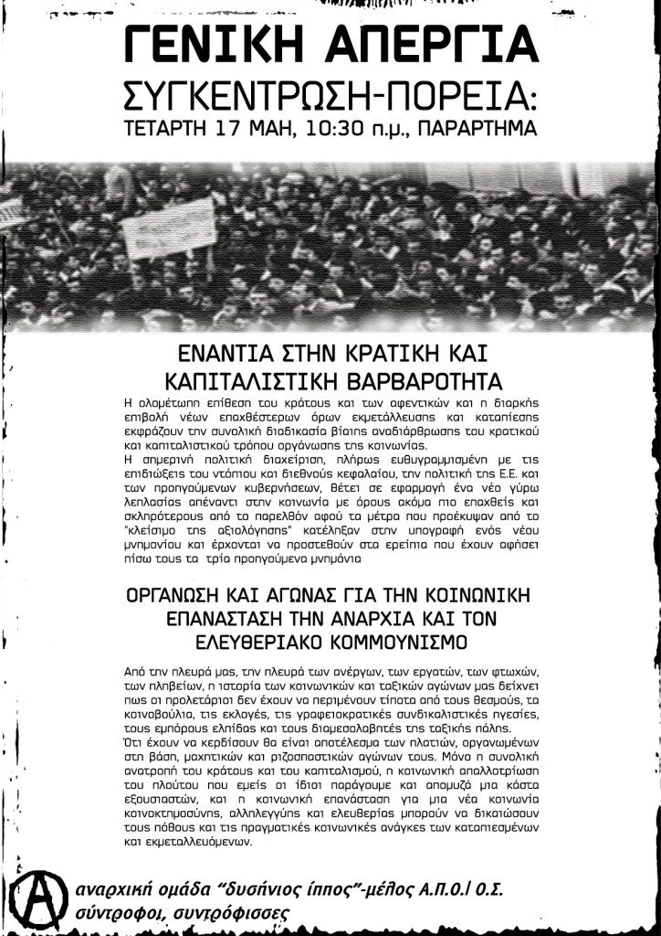 ΓΕΝΙΚΗ ΑΠΕΡΓΙΑ ΤΕΤΑΡΤΗ 17 ΜΑΙΟΥ 2017