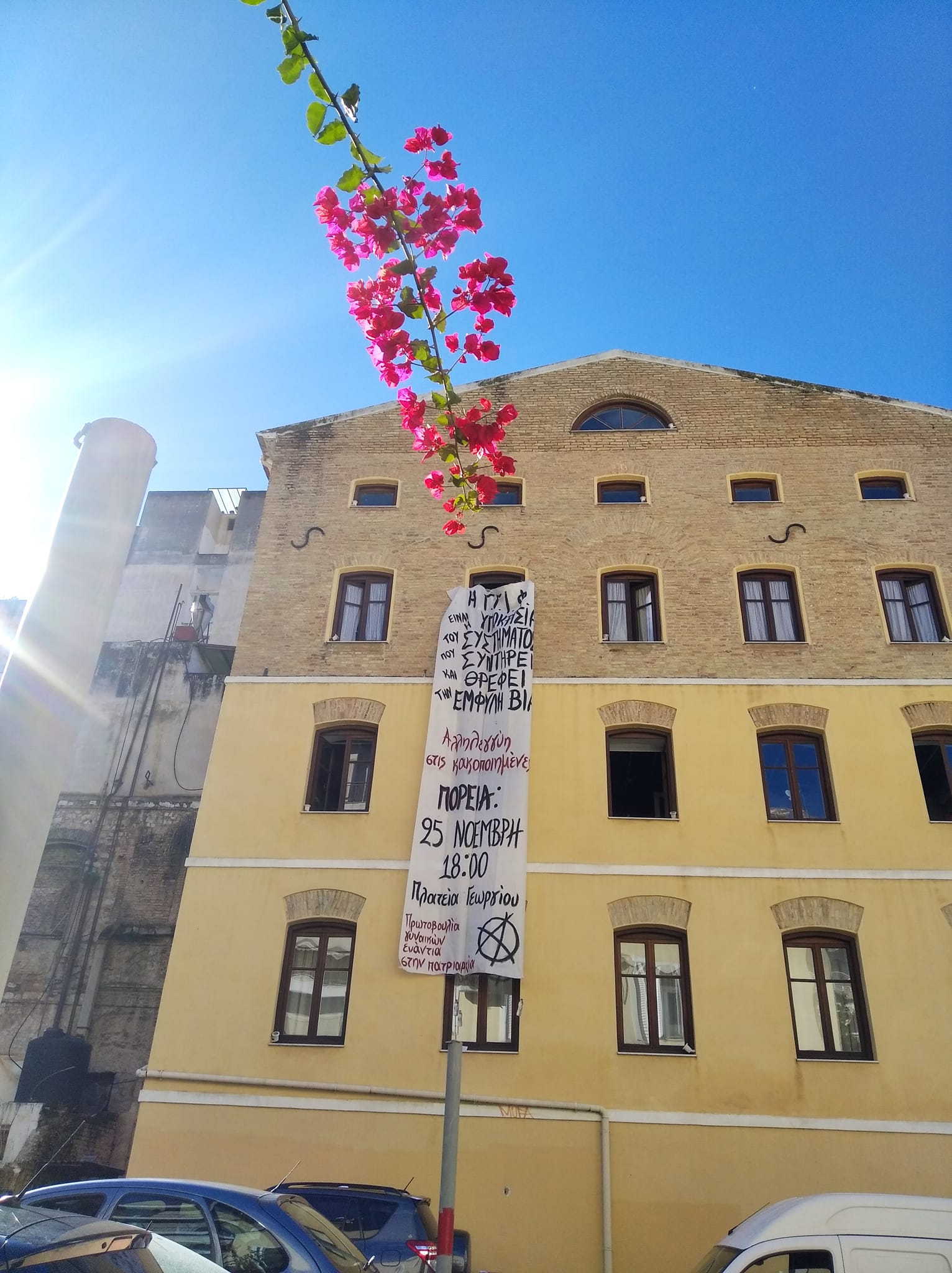 Σήμερα το πρωί (24/11), εν όψει της 25ης Νοέμβρη -μέρα για την εξάλειψη της βίας κατά των γυναικών- πραγματοποιήσαμε παρέμβαση με πανό, τρικάκια και συνθήματα, στα γραφεία του συμβουλευτικού κέντρου της Γενικής Γραμματείας Ισότητας των Φύλων του Υπουργείου Εσωτερικών στο παράρτημα Πάτρας. Όπως διακηρύττει και η ίδια, η Γ.Γ.Ι.Φ, είναι ο αρμόδιος κυβερνητικός φορέας για το σχεδιασμό, την υλοποίηση και την παρακολούθηση της εφαρμογής των πολιτικών για την ισότητα μεταξύ γυναικών και ανδρών.