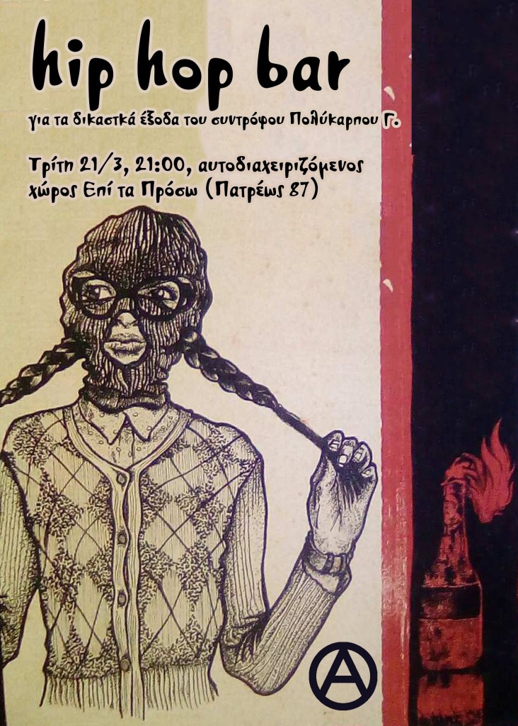 Σάββατο 21/1, 19:00, στον αυτοδιαχειριζόμενο χώρο Επί τα Πρόσω (Πατρέως 87)