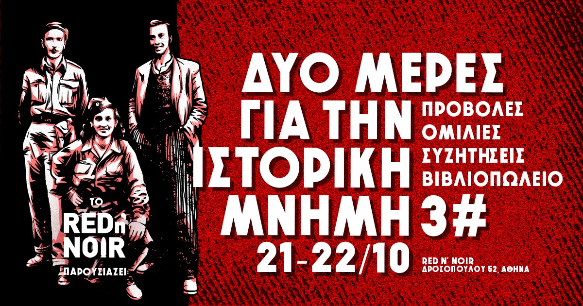 Το Σάββατο και την Κυριακή 21 και 22 Οκτώβρη 2023 στο βιβλιοκαφέ red n’ noir (Δροσοπούλου 52, Κυψέλη).