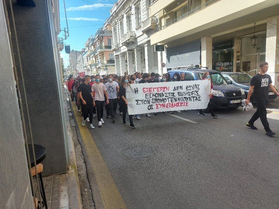 Οι μαθητές του 7ου ΓΕΛ στην πορεία ενάντια στις συγχωνεύσεις τμημάτων. Το άρθρο δημοσιεύτηκε στο 6ο τεύχος της εφημερίδας Ζερμινάλ