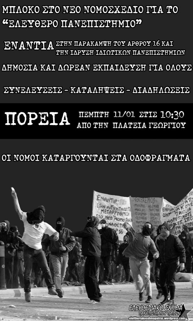 ΝΑ ΜΠΛΟΚΑΡΟΥΜΕ ΤΗΝ ΨΗΦΙΣΗ ΤΟΥ ΝΕΟΥ ΝΟΜΟΣΧΕΔΙΟΥ ΓΙΑ ΤΑ ΙΔΙΩΤΙΚΑ ΠΑΝΕΠΙΣΤΗΜΙΑ|ΠΟΡΕΙΑ ΠΕΜΠΤΗ 11/10 10:30 ΠΜ ΠΛ. ΓΕΩΡΓΙΟΥ