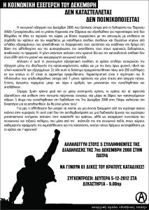 Εν κατακλείδι, ως αναρχικοί δεν χαρίζουμε το αίμα και το πνεύμα του Νοέμβρη σε κανέναν που βλέπει την εξέγερση του Πολυτεχνείου ως αγώνα για την αποκατάσταση της δημοκρατίας και της επιστροφής στην «ομαλότητα». Το σύνθημα “κάτω η εξουσία” στα κάγκελα του Πολυτεχνείου είναι φωτεινός φάρος που μας οδηγεί 39 χρόνια μετά και μας θυμίζει την βαθιά θέληση και πίστη των ανθρώπων για ελευθερία και κοινωνική αυτοδιεύθυνση. Απέναντι στον ολοκληρωτισμό που επιβάλλει η δημοκρατία, η μόνη πραγματική προοπτική αντίστασης είναι οι κοινοί, αδιαμεσολάβητοι αγώνες των καταπιεσμένων -ντόπιων και μεταναστών-, η αυτοοργάνωση και η συλλογικοποίηση παντού: στους χώρους εργασίας, στα σχολεία, στα πανεπιστήμια, στις γειτονιές. Με τα σωματεία βάσης, τις συνελεύσεις γειτονιάς, τους αυτοδιαχειριζόμενους χώρους αντίστασης, τις άγριες απεργίες και με όπλο μας την αλληλεγγύη, οφείλουμε στους εαυτούς μας να υπερβούμε το φόβο, την παθητικότητα και την εξατομίκευση και να θέσουμε τους όρους της κοινωνικής και ταξικής αντεπίθεσης, για την καταστροφή του κράτους, του καπιταλισμού και των ιεραρχικών δομών των κοινωνικών σχέσεων, που το μόνο που έχουν να υποσχεθούν είναι περισσότερη εκμετάλλευση και καταπίεση, ανταγωνισμό, πόλεμο και καταστροφή της φύσης και των πόρων της, της ζωής και της ελευθερίας, του ανθρώπου και της κοινωνίας. Στη θέση τους να δημιουργήσουμε έναν καινούργιο κόσμο αλληλεγγύης, ισότητας και ελευθερίας που η ζωή θα οργανώνεται με βάση την εξής αρχή: “από τον καθένα σύμφωνα με τις δυνατότητες του στον καθένα σύμφωνα με τις ανάγκες του”.