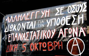 Στις 5 Οκτώβρη ξεκίνησε στην Αθήνα, σε ειδικά διαμορφωμένη αίθουσα των φυλακών Κορυδαλλού, η δίκη της υπόθεσης του ‘Επαναστατικού Αγώνα’, με κατηγορούμενους τους Ν. Μαζιώτη, Π. Ρούπα και Κ. Γουρνά που έχουν αναλάβει την πολιτική ευθύνη της συμμετοχής τους στην οργάνωση και τους αναρχικούς Σ. Νικητόπουλο, Χ. Κορτέση, Β. Σταθόπουλο, Μ. Μπεραχά και Κ. Κάτσενο που διώκονται για την υπόθεση αυτή εξαιτίας των φιλικών και πολιτικών τους σχέσεων.