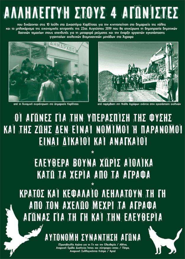 Συγκέντρωση τη Δευτέρα 4 Μαΐου στις 19.00 στην Κεντρική Πλατεία της Καρδίτσας καλεί η Ανοιχτή συνέλευση ενάντια στην Πράσινη Ανάπτυξη και στα αιολικά στα Άγραφα.