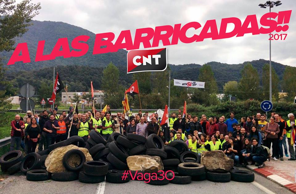 Αναφορικά με τη γενική απεργία της Τρίτης στην Καταλονία, η CNT θέλει να δείξει την ικανοποίησή της για την ανταπόκριση που έδωσαν χιλιάδες εργαζόμενοι καθ ‘όλη τη διάρκεια της ημέρας και σε όλες τις επαγγελματικές κατηγορίες. Η λαϊκή κινητοποίηση απάντησε και πάλι ενάντια στη σοβαρή καταστολή υπό την οποία ζει η καταλανική κοινωνία. Η αλληλεγγύη των εργαζόμενων δείχνει για άλλη μια φορά ότι μπορεί να κάνει οτιδήποτε.