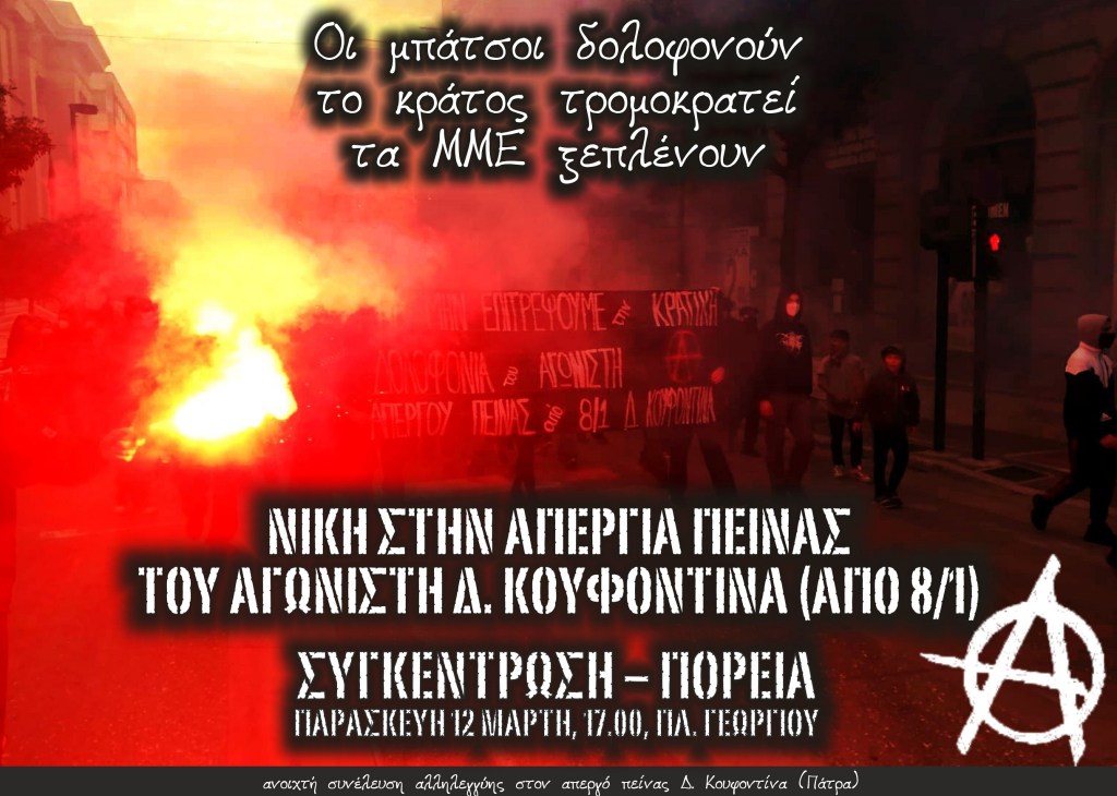 Το Γενάρη του 2021, ο αγωνιστής πολιτικός κρατούμενος Δημήτρης Κουφοντίνας ξεκίνησε απεργία πείνας με αίτημα τη μεταγωγή του στα υπόγεια των φυλακών Κορυδαλλού, εκεί όπου είχε εκτίσει περισσότερα από 16 χρόνια της ποινής του. Είχε προηγηθεί η αιφνιδιαστική απαγωγή του από τις φυλακές Κασσαβέτειας και η μεταφορά του στις φυλακές Δομοκού ως μια ξεκάθαρα ρεβανσιστική κίνηση από την πλευρά της τότε ΓΓ «αντι»-εγκληματικής πολιτικής, γνωστής και μη εξαιρετέας για τα οικονομικά σκάνδαλα των απευθείας αναθέσεων, Σοφίας Νικολάου. Μια εκδικητικότητα που φωτογραφικά στόχευε τον Κουφοντίνα, έναν αγωνιστή του οποίου η δράση είναι άρρηκτα συνδεδεμένη με τη μεταπολιτευτική ιστορία του επαναστατικού κινήματος στην Ελλάδα, και που ως τέτοιος, έμεινε περήφανα αμετανόητος, συνεχίζοντας να αγωνίζεται και μέσα από τα κελιά της δημοκρατίας επιδεικνύοντας αστείρευτη αγωνιστικότητα, ήθος και αξιοπρέπεια, σεβόμενος την πολιτική παρακαταθήκη μισού αιώνα αγώνων.