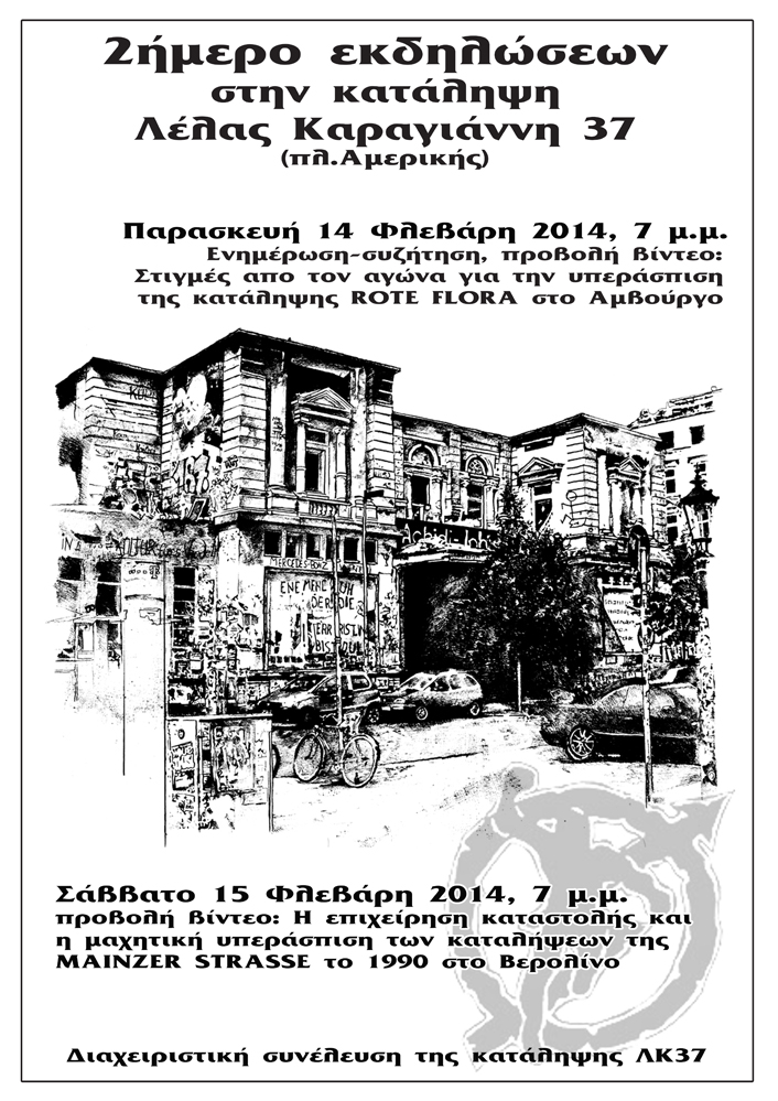 «Η διαρκώς κλιμακούμενη επίθεση των κυρίαρχων πάνω στα στοιχειώδη δικαιώματα και τους όρους ζωής των από κάτω της κοινωνίας συνοδεύεται από την αντίστοιχη όξυνση και κλιμάκωση της κρατικής και παρακρατικής καταστολής των αντιστάσεων. Και ιδιαίτερα εκείνων των αντιστάσεων που δεν ελέγχονται και δεν περιορίζονται από τους θεσμούς, τους φορείς και τους παράγοντες του συστήματος, αλλά εκδηλώνονται ακηδεμόνευτα, επιχειρώντας το πέρασμα από την αυθόρμητη διαμαρτυρία και αγανάκτηση των καταπιεσμένων και εκμεταλλευόμενων ανθρώπων στη συνειδητή εξέγερση και την κοινωνική επανάσταση ως μοναδική απάντηση-διέξοδο στην κρίση του συστήματος και την επίθεση της άρχουσας τάξης. Οι καταλήψεις και γενικότερα οι αυτοδιαχειριζόμενοι χώροι είναι συγκεκριμένο κομμάτι αυτής της συνειδητής και αυτοοργανωμένης αντίστασης, και έχουν διαδραματίσει σημαντικό ρόλο στην ανάπτυξη και την εξέλιξη των ευρύτερων κοινωνικών αγώνων τις τελευταίες δεκαετίες. Για αυτό και βρίσκονταν πάντα στο στόχαστρο της κρατικής καταστολής και των παρακρατικών συμμοριών». ΛΚ 37, Γενάρης 2012