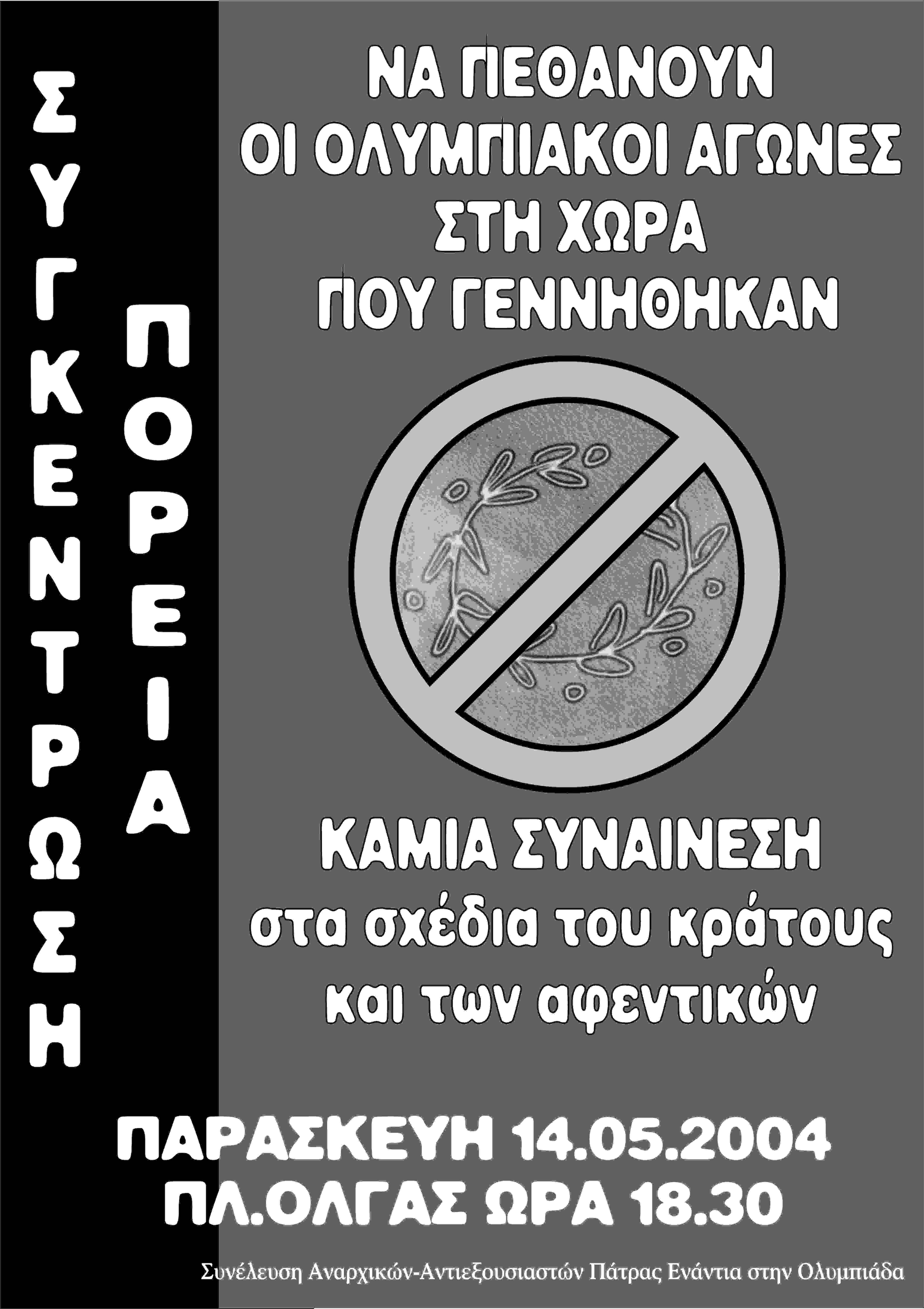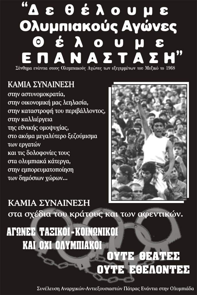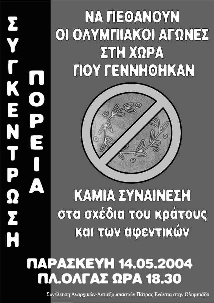July 25, 2004December 27, 2010 δυσήνιος ίππος Συνελευσεις ΟΛΥΜΠΙΑΔΑ 2004 Αφίσσες και κείμενα απο την “συνέλευση αναρχικών – αντιεξουσιαστών Πάτρας ενάντια στην Ολυμπιάδα” που υπήρχε απο το Γενάρη εώς τον Ιούλιο του 2004.