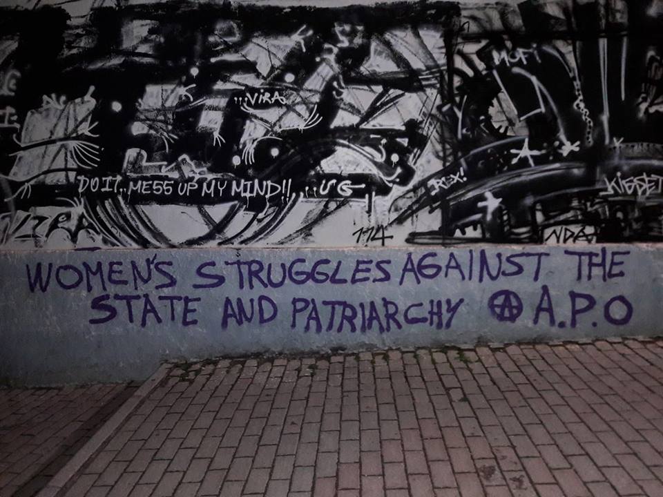 Γιατί ο κρατικός κατασταλτικός στρατός τους είναι που ξεγυμνώνει διαδηλώτριες στα αστυνομικά τμήματα, ξυλοκοπεί αναρχικές σε πορείες, επιτίθεται σε αγωνιζόμενες φυλακισμένες, βασανίζει πρόσφυγες και μετανάστριες στα κολαστήρια της Πέτρου Ράλλη και στα στρατόπεδα συγκέντρωσης, καταφέρεται με σεξιστικές απειλές απέναντι σε νέες και νέους, προσαγάγει, συλλαμβάνει και επιχειρεί να τρομοκρατήσει γυναίκες που αντιστέκονται.