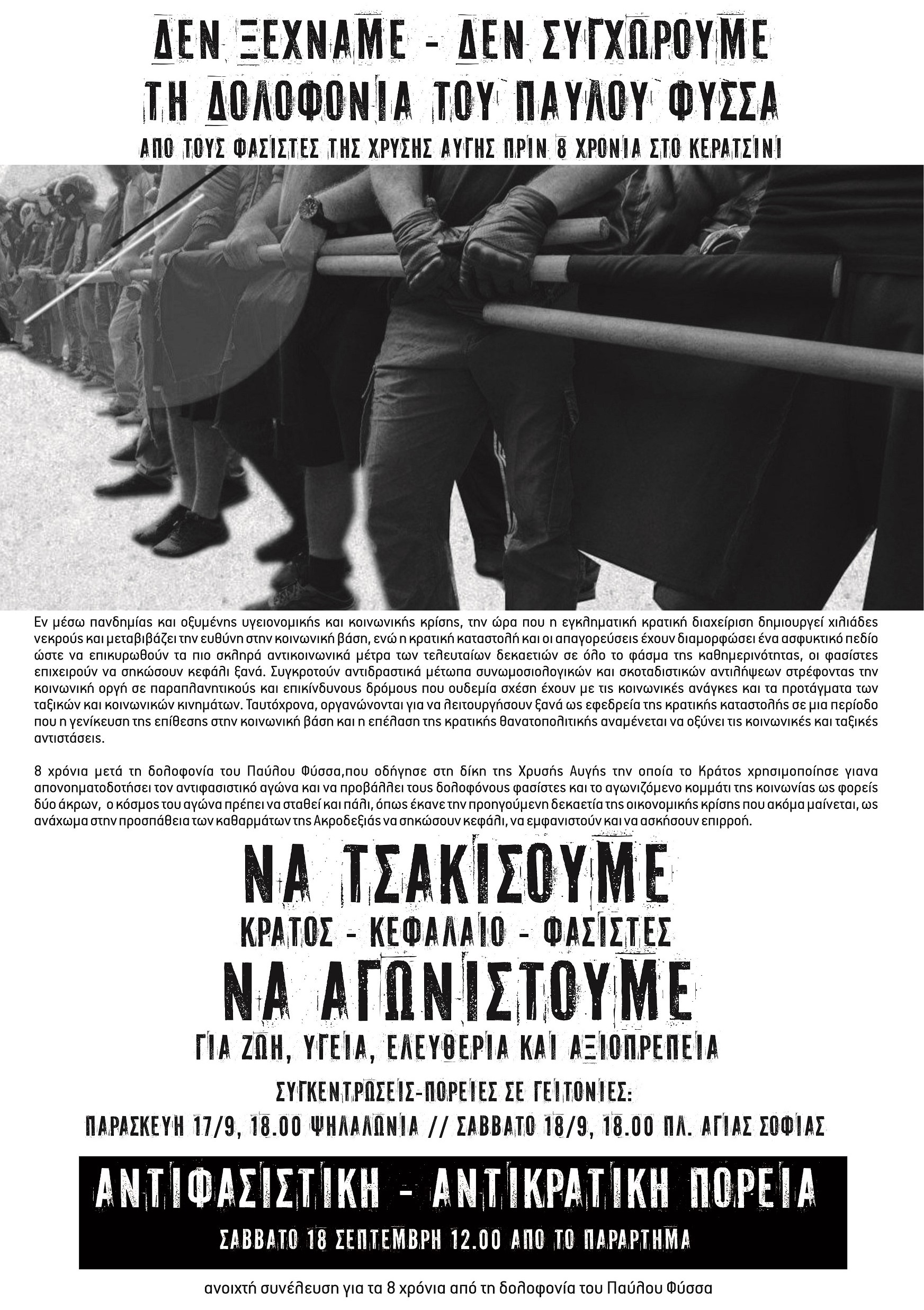 ΑΝΤΙΚΡΑΤΙΚΗ-ΑΝΤΙΦΑΣΙΣΤΙΚΗ ΠΟΡΕΙΑ: ΔΕΥΤΕΡΑ 18/9, 18.00, ΠΛ.ΓΕΩΡΓΙΟΥ