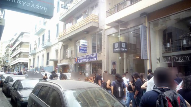 Την Τετάρτη 16 Μάη, ομάδα 25 αναρχικών επιχείρησε να εισβάλει στο συμβολαιογραφείο Ραβαζούλα, την ώρα διεξαγωγής ηλεκτρονικών πλειστηριασμών με αποτέλεσμα να δεχτεί την επίθεση των ΜΑΤ με ξύλο και χημικά. Την επόμενη μέρα, πραγματοποιήθηκε εκ νέου συγκέντρωση έξω από το εν λόγω γραφείο με τη συμμετοχή αρκετού κόσμου. Οι συγκεντρώσεις έξω από τα συμβολαιογραφεία συνεχίζονται μέχρι σήμερα, σε κάθε ημερομηνία όπου είναι ορισμένη διεξαγωγή τους.
