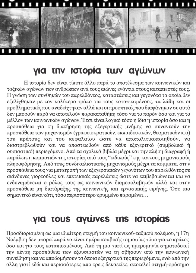 Ανακοίνωση σχετικά με τη διαδήλωση της 17ης Νοέμβρη στην Πάτρα, τη στοχοποίηση και τα ρουφιανοδημοσιεύματα τοπικής εφημερίδας