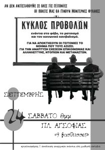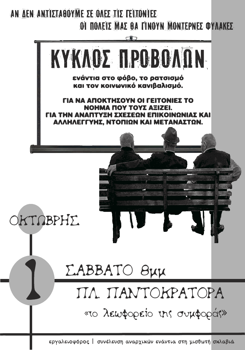 Περίπου 70 άτομα παρακολούθησαν την ταινία, ενώ μοιράστηκαν και εκατοντάδες κείμενα σε περαστικούς και περίοικους. Ήταν η πρώτη από μια σειρά προβολών που διοργανώνει η συνέλευση σε γειτονιές της πόλης ενάντια στο φόβο, το ρατσισμό και τον κοινωνικό κανιβαλισμό, για να αποκτήσουν οι γειτονιές το νόημα που τους αξίζει, για την ανάπτυξη σχέσεων επικοινωνίας και αλληλεγγύης ντόπιων και μεταναστών.