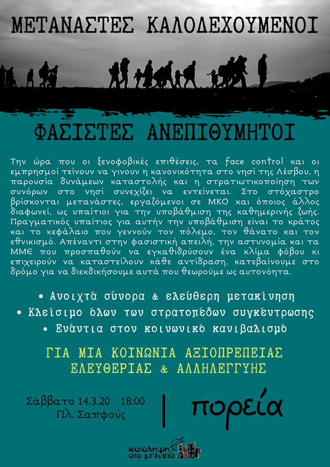 Είναι οι ίδιοι που έχουν εγκλωβίσει δεκάδες χιλιάδες ανθρώπους σε συνθήκες εξαιρετικά επικίνδυνες. Η υγεία τους λόγω των συνθηκών εγκλεισμού βρίσκεται σε ακόμα μεγαλύτερο κίνδυνο και δεν θα δεχθούμε την αντιμετώπισή τους ως αναλώσιμου πληθυσμού. Απαιτούμε άμεσα μέτρα στήριξης για τους κρατούμενους και αποσυμφόρηση των φυλακών. Απαιτούμε τον απεγκλωβισμό των προσφύγων και μεταναστών από τα στρατόπεδα συγκέντρωσης και την επίταξη των άδειων ξενοδοχειακών μονάδων για να προστατευθούν από την πανδημία, καθώς και τη δημιουργία ειδικών δομών υγείας για όλους.