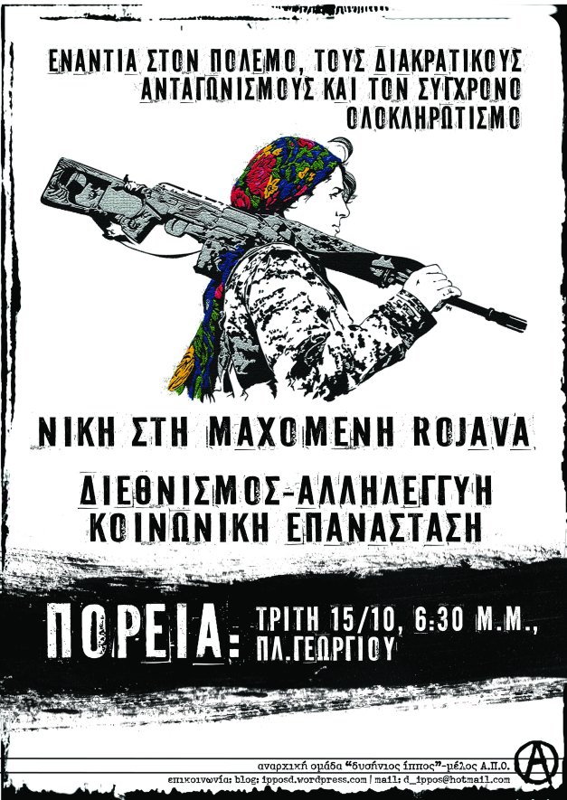 Διεθνιστική αλληλεγγύη και κοινοί αγώνες ενάντια στον σύγχρονο ολοκληρωτισμό, τον εθνικισμό, το Κράτος, τον Καπιταλισμό και την Πατριαρχία.