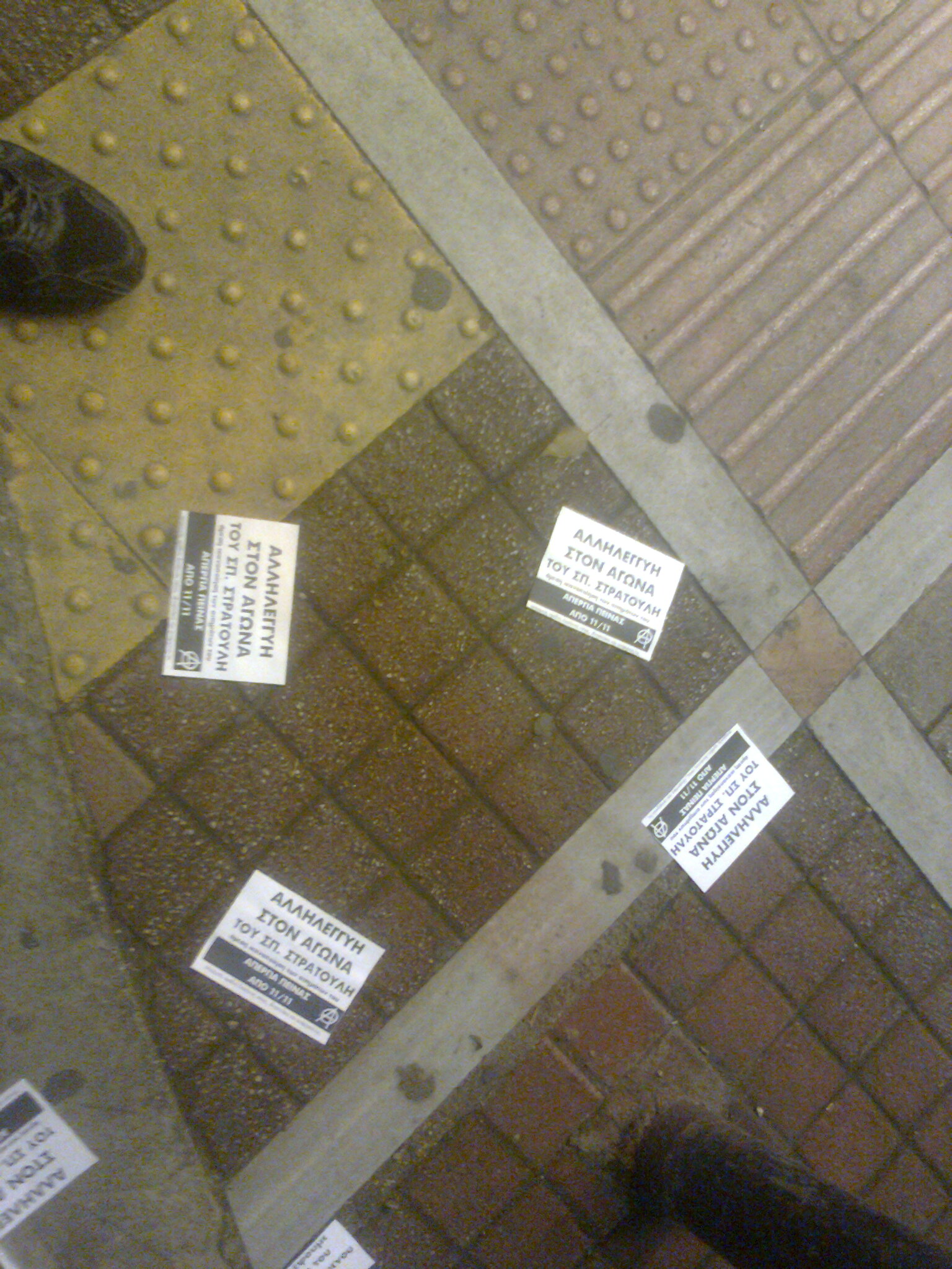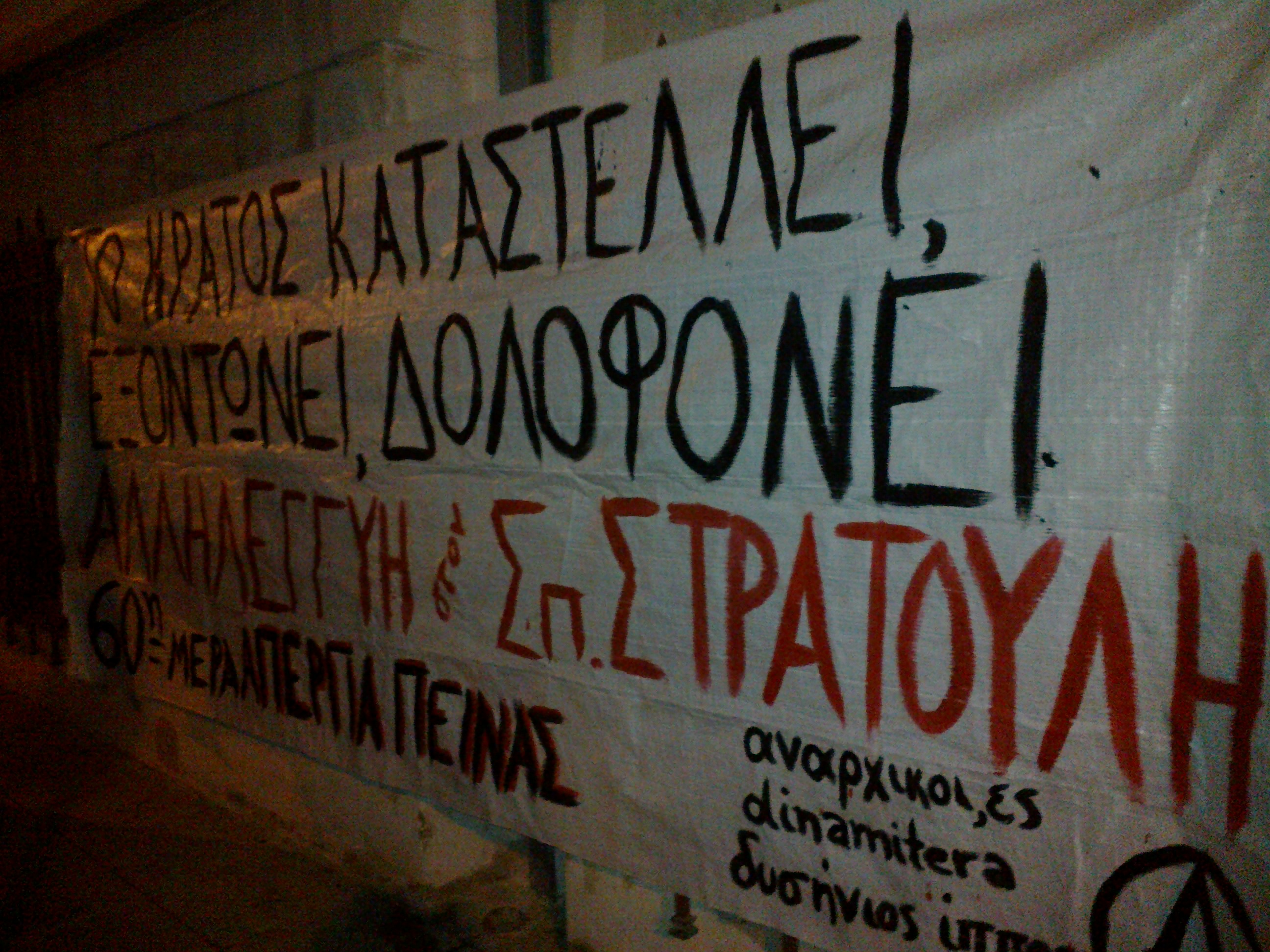 Παράλληλα η φωνή μας συνδέθηκε με χιλιάδες φωνές μακριά από τα τείχη, που πραγματοποιούσαν πορείες έξω από τις φυλακές, συγκρούστηκαν με τα ΜΑΤ (πορεία στο Δομοκό), κάλεσαν συγκεντρώσεις συμπαράστασης, κόλλησαν αφίσες, δημιούργησαν ιστοσελίδες ενημέρωσης (fylakes2014) διαδήλωσαν σε κεντρικούς δρόμους αρκετών πόλεων, οργάνωσαν εκδηλώσεις για την κινητοποίηση μας, επιτέθηκαν στην αδικία (ρίψη χειροβομβίδας σε όχημα σωφρονιστικού στο Αιγάλεω) και μας έστειλαν ζωντανό μήνυμα αλληλεγγύης ότι σε αυτόν τον αγώνα δεν είμαστε μόνοι μας.