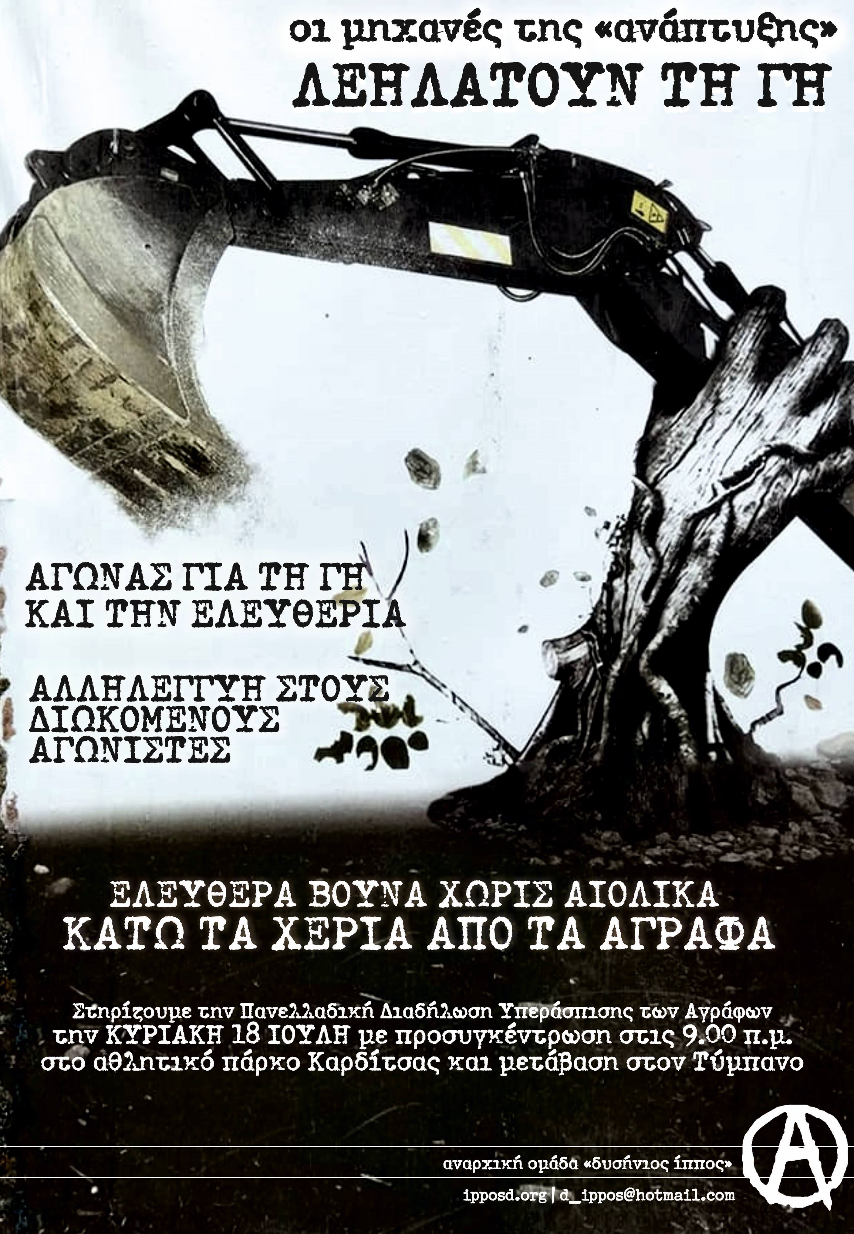 Οι μηχανές της «ανάπτυξης» λεηλατούν τη Γη. Αγώνας για τη Γη και την Ελευθερία. Αλληλεγγύη στους διωκόμενους αγωνιστές.