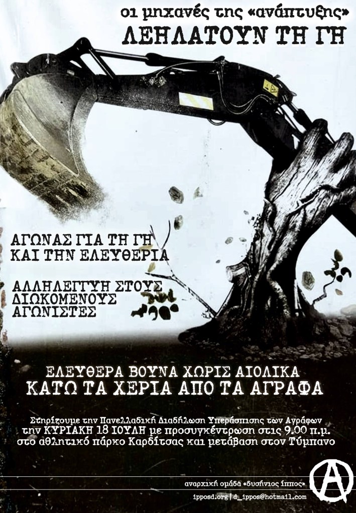 Στηρίζουμε την Πανελλαδική Διαδήλωση Υπεράσπισης των Αγράφων την ΚΥΡΙΑΚΗ 18 ΙΟΥΛΗ με προσυγκέντρωση στις 9.00 π.μ. στο αθλητικό πάρκο Καρδίτσας και μετάβαση στον Τύμπανο