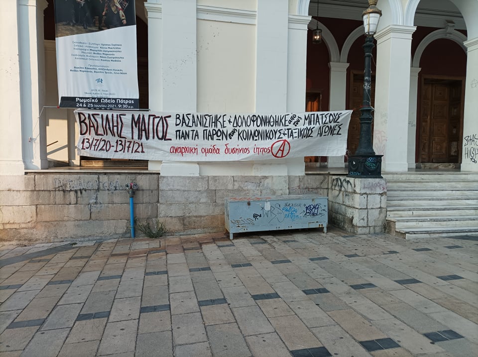 Ανάρτηση πανό στο Δημοτικό Θέατρο (πλατεία Γεωργίου) στην Πάτρα