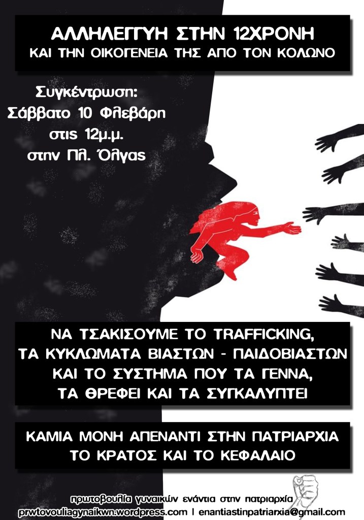 Continue reading “ΣΥΓΚΕΝΤΡΩΣΗ ΑΛΛΗΛΕΓΓΥΗΣ ΣΤΗ 12ΧΡΟΝΗ ΚΑΙ ΤΗΝ ΟΙΚΟΓΕΝΕΙΑ ΤΗΣ: ΠΕΜΠΤΗ 28.3, 19:00, ΠΛ.ΓΕΩΡΓΙΟΥ”